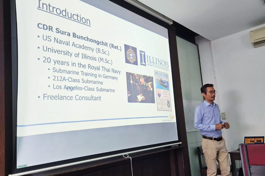 วิทยากรพิเศษ จุฬาลงกรณ์มหาวิทยาลัย Posted bySubmarineConsulting.comMarch 21, 2024Posted inProducts วิทยากรพิเศษเรื่อง Submarine Navigation ในวิชา Map and Applications คณะวิศวกรรมศาสตร์ จุฬาลงกรณ์มหาวิทยาลัย มีนาคม 2567 Share this: Share on X (Opens in new window) X Share on Facebook (Opens in new window) Facebook Share on LinkedIn (Opens in new window) LinkedIn Share on Pinterest (Opens in new window) Pinterest Like Loading... Related
