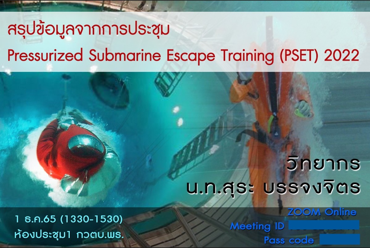 วิทยากรพิเศษในหัวข้อ สรุปข้อมูลจากการประชุม Pressurized Submarine Escape Training (PSET) 2022 ให้กับกองเวชศาสตร์ใต้น้ำและการบิน กรมแพทย์ทหารเรือ ธันวาคม 2565
